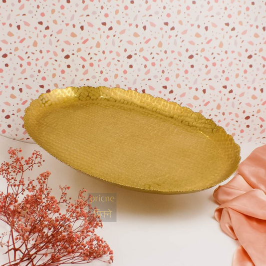 Nail Scratched Gold Serving Tray - Pure Gold Matte Oval Zigzag Edges